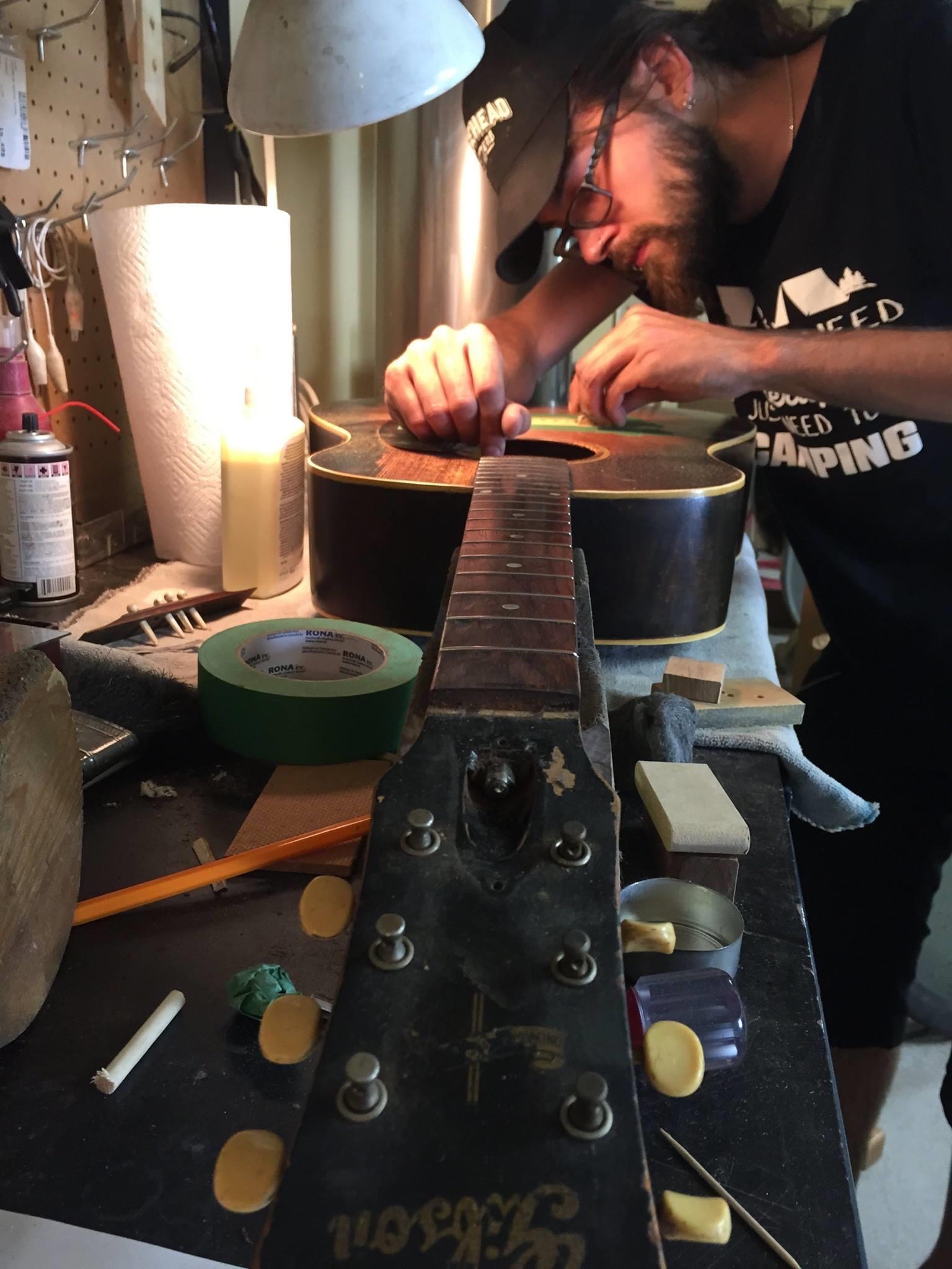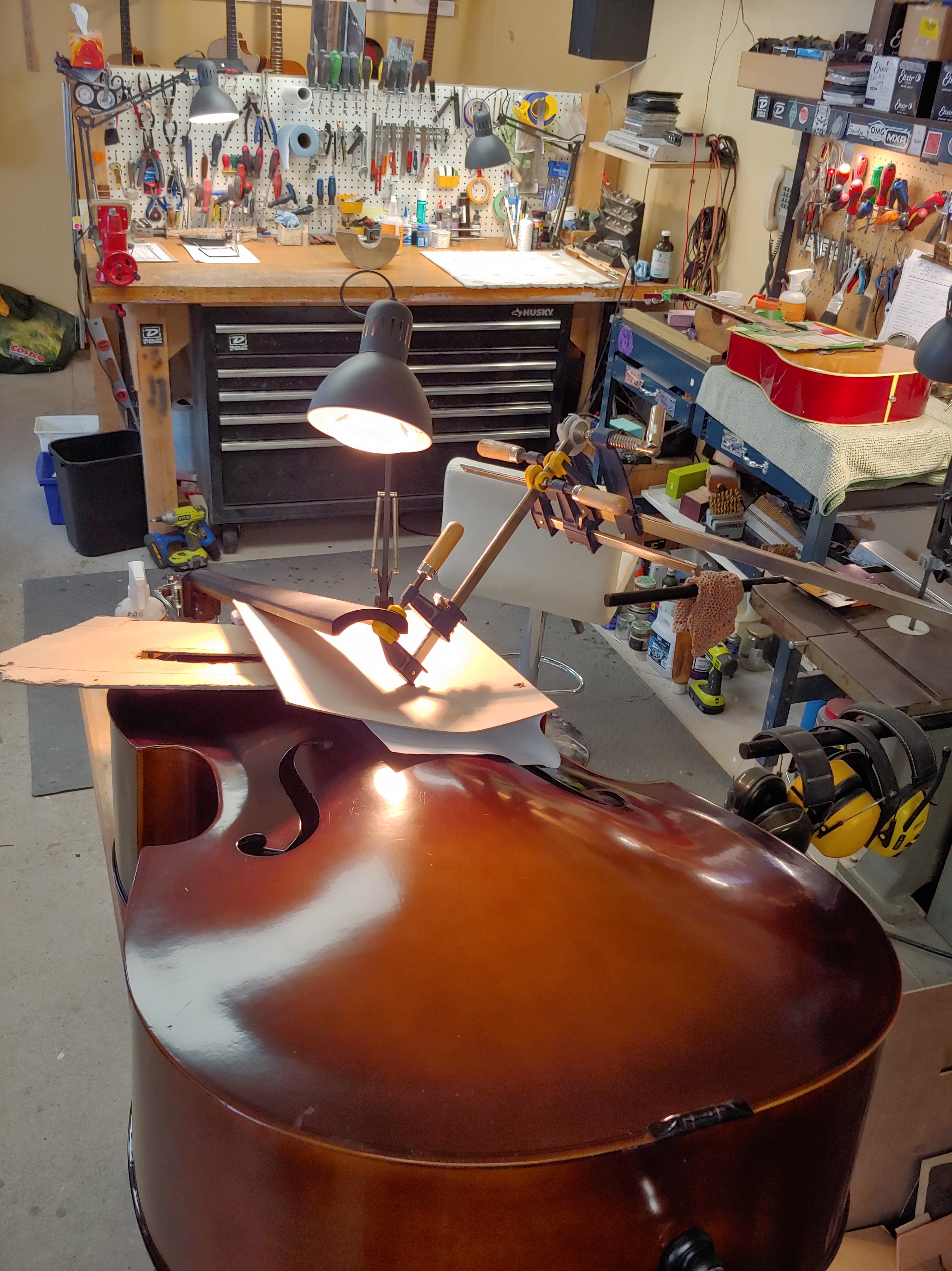 Détordre la touche d’une contrebasse (chaleur, eau, gravité, sablage)